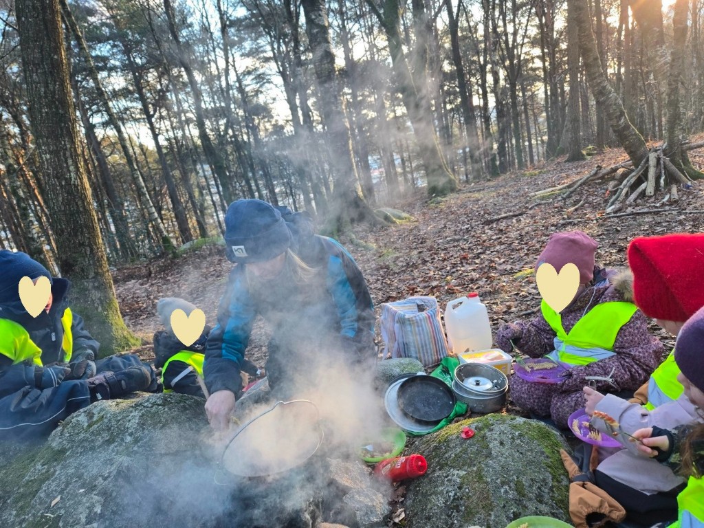 Barna får gode opplevelser med friluftsliv året rundt. Vinteren byr på lek i snø, undring, samtaler og læring. Gjennom eventyret om skinnvotten lærer barna om inkludering, varme og vennskap.